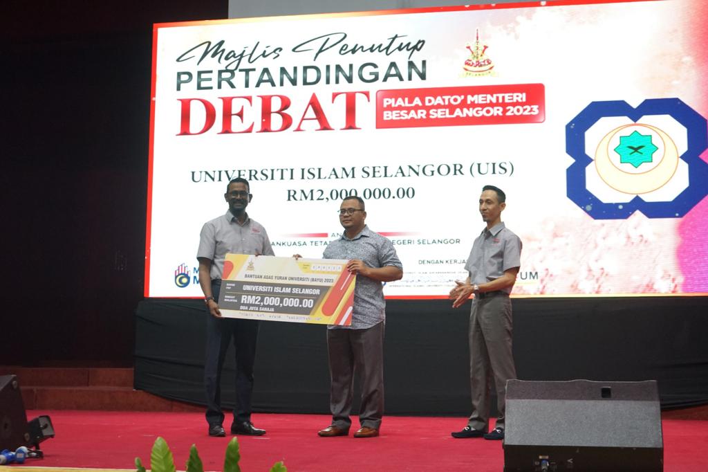 Majlis penutup Program Debat Piala Dato' Menteri Besar Selangor telah dianjurkan dengan jayanya menyaksikan 48 pasukan telah berentap dengan kesungguhan yang jitu. Seluruh warga Universiti Islam Selangor ingin merakamkan setinggi-tinggi penghargaan dan terima kasih kepada pihak Kerajaan Negeri Selangor kerana sudi memilih UIS sebagai tuan rumah penganjuran program debat kali ini. Terima kasih juga buat pasukan Majlis Debat Universiti-universiti Malaysia (MADUM) atas komitmen yang cemerlang dalam memastikan program tiga hari ini dapat berjalan dengan baik.