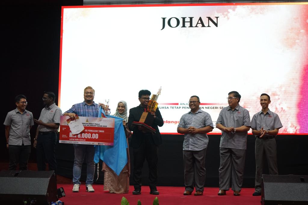 YBhg. Rektor UIS, Prof Madya Dato' Dr. Mohd Farid Ravi Bin Abdullah mengiringi Menteri Besar Selangor, YAB Dato' Seri Amiruddin Shari dalam sesi penyampaian hadiah kepada semua pemenang. YAB Dato'Menteri Besar turut menyerahkan mock cheque Bantuan Awal Yuran Universiti (BAYU) bernilai RM2 juta kepada Rektor UIS dan mengumumkan pemberian Geran Penyelidikan Negeri Selangor bernilai RM3 juta kepada UIS.